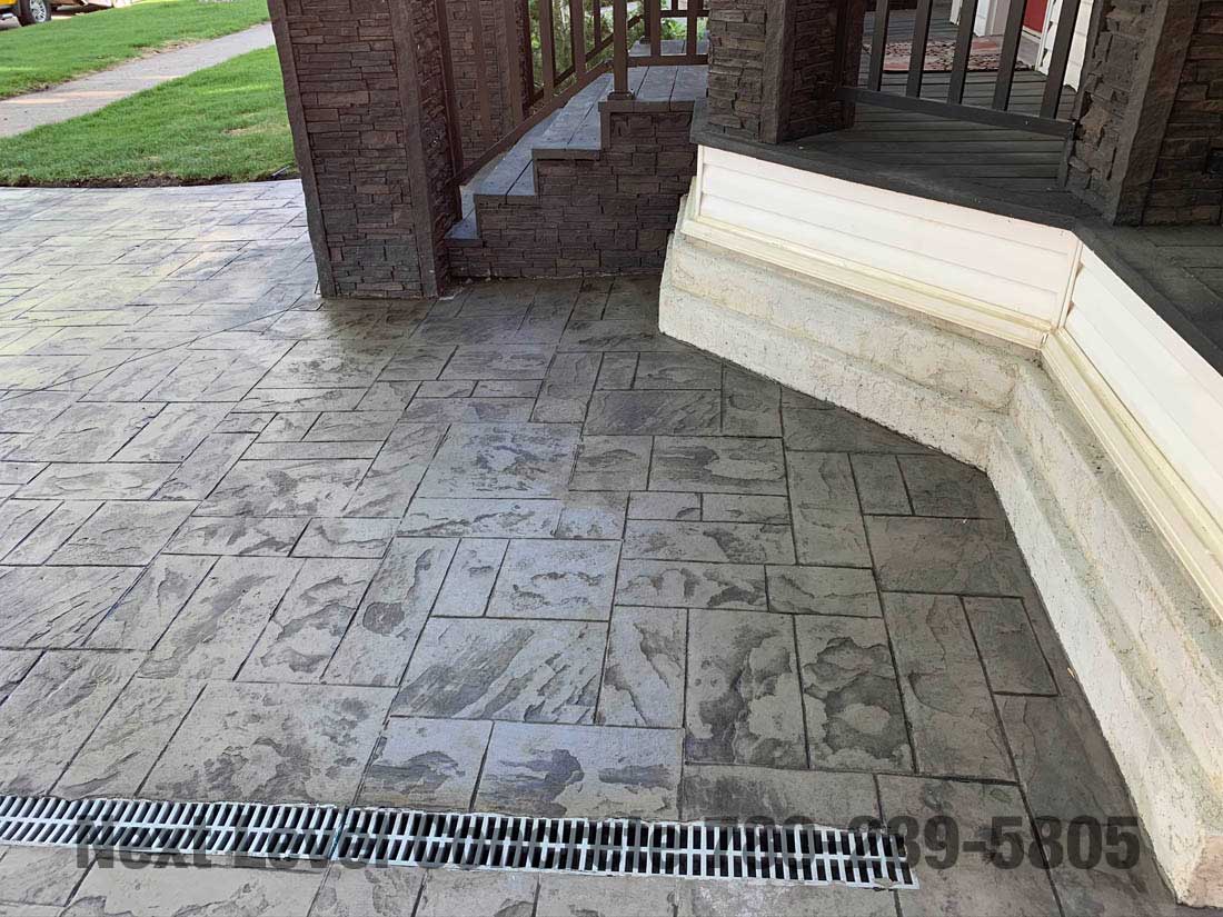 Client ask us to replace patio stones with stamped concrete which would be safer, easier to shovel and basically maintenance free. Additionally they wanted the walkway to integrate a sitting area where they could enjoy the front yard. He was very happy with the result.