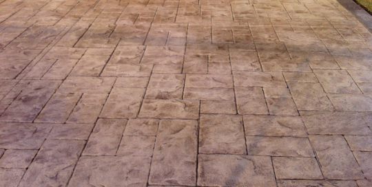 staffStamped concrete driveway in Edmonton with decorative borders. The driveway is still in perfect condition 7 years later!